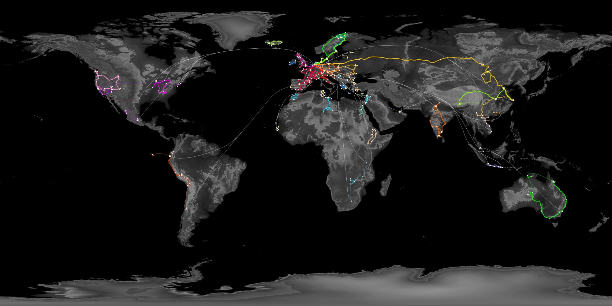The map contains all routes I did on my trips.De kaart hieronder bevat alle routs die ik gereisd heb op mijn trips.